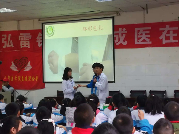 3月22日下午,成都医学院益暖联合会和急救协会在桂林小学多功能教室和三年级的小朋友们一起举办了“弘雷锋精神,成医在行动”主题活动。