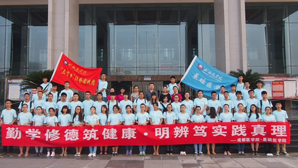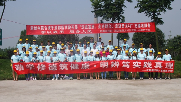 7月18日上午,成都医学院基础医学院在成都市新都区清流镇黄龙村开展以“勤学修德筑健康,明辨笃实践真理”为主题的三下乡社会实践活动。基础医学院党委副书记王绪伦、病原学教研室李晋川教授、基础团委副书记郑蕖老师、辅导员王春燕老师、周炬老师、校医院姚医生以及56名学生参加社会实践活动。