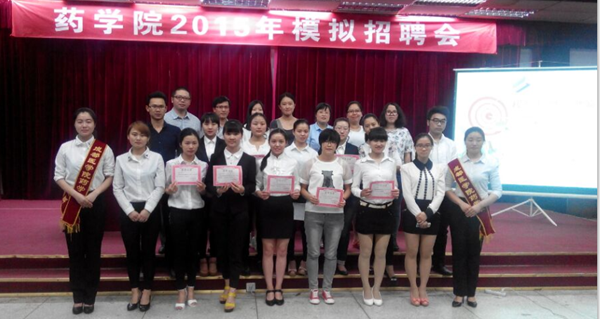 此次模拟招聘会设置医院药房、药品研发、药厂QA(QC)、医药代表四个求职方向,应聘者们逐一进行面试,模拟招聘人员从知识能力储备、现场面试技巧和简历制作方面做了针对性点评。每一个职业对人的要求是不同的,有的注重专业知识,有的看重综合能力,有的则更看重交际和沟通能力,求职者要认真分析自己的特长和兴趣,明确求职方向,做到有的放矢;在简历制作方面,优势一定要突出,简历的信息也要全面;当然,学习能力、为人处世的态度和个人品质也是用人单位所看重的。在现场互动环节,观众向招聘员们提出了各自感兴趣的话题,并得到了详尽回答。最终,范丽萍、徐明月、何金菊、钟冶佳获得最佳面试奖;杨扬、熊彩虹、王友芳、邓玉川获得最佳简历奖。郑向辉在总结讲话中希望学生们能做到理论与实践相结合,抓住一切机会不断完善自己,努力加强自身能力培养,做到学有所成。