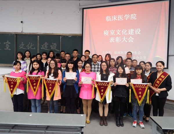 4月22日下午,临床医学院在新都校区举办2015年上半年寝室文化建设表彰大会。临床医学院党委副书记杨建、学生科科长陈兵、全体辅导员老师及2014级部分新生共150余人参加了表彰大会。