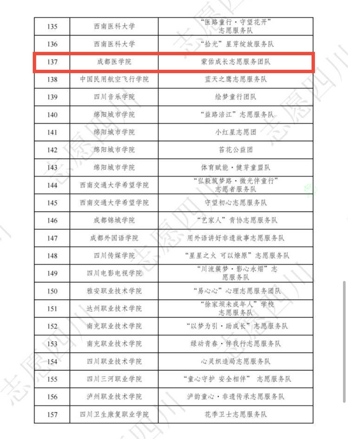 近日,由四川省青年志愿者服务中心、四川青年志愿者协会主办的“青青陪伴·志愿有我”大学生志愿服务专项行动入选名单正式公布,成都医学院青年志愿者协会蒙佑成长志愿服务团队成功入选,成为全省183支入选队伍之一,这是我校志愿服务工作在省级专项行动中的又一重要成果。