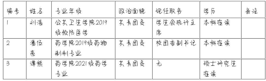 现将拟推选名单予与公示,如有异议请实名向校团委反映,公示期5天(2021年10月15日——2021年10月20日)。