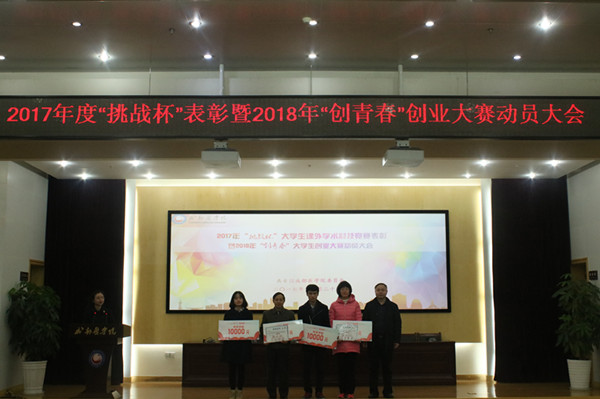 一直以来我校“挑战杯”竞赛工作得到学校自上而下的关注和关心,老师们、同学们参赛积极性逐年提高,参赛项目和获奖数量也在逐年提高。2018年“创青春”创业比赛即将开始,希望全校同学结合自身优势,以敢于吃苦的奋斗精神,坚持不懈的学习精神,激发青春的创新活力,探索社会发展的新领域和新技术,力争取得更优异的成绩。