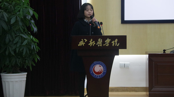 临床医学院2013级学生李胜男代表获奖团队学生发言。她讲述了和团队成员团结协作参加“挑战杯”比赛的经历,梳理了参赛流程,分享了参赛经验。她表示,“挑战杯”比赛是一个很好的提高自己的平台,坚持参赛对于自己的成长很有助益,同时号召学弟学妹们积极参加各项创新创业比赛。获奖团队的指导教师代表张晓老师作了精彩的经验交流报告。