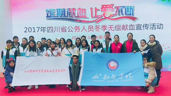 12月14日上午,校团委老师带领25名志愿者到成都市血液中心参加四川省红十字会组织的第六届冬季国家工作人员无偿献血宣传活动。