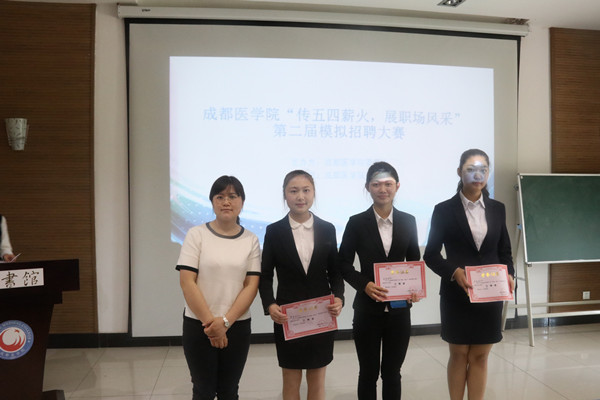 5月3日中午,由共青团成都医学院委员会主办,成都医学院学生会承办的成都医学院“职场,我来了”第二届模拟招聘大赛决赛,在图书馆四楼402播放厅圆满落幕。人事处郑人源科长,检验医学院孙文魁老师,校团委办公室刁穗、卜舒老师担任此次大赛评委。