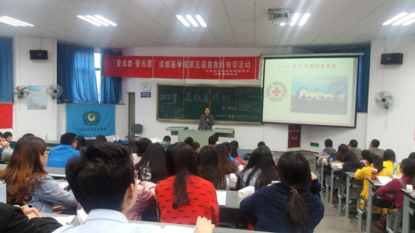 为增强我校师生面对突发事件和意外伤害的应急意识,帮助大家学习了解应急救护的基本知识,提高自救互救能力,在成都市、新都区两级红十字会的大力支持下,我校2017年红十字救护员培训工作4月8日在我校博学楼B109教室正式启动。