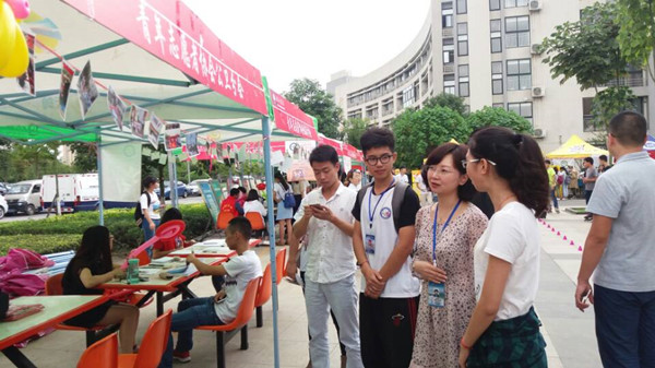 在报名当天,活动现场井然有序,各组织、社团的招新宣传方式也让人脑洞大开。活动得到了校团委书记彭成静老师的肯定,在活动现场彭书记和同学们交流了意见,了解了同学们的需求,并对同学们提出了一些建议和意见。