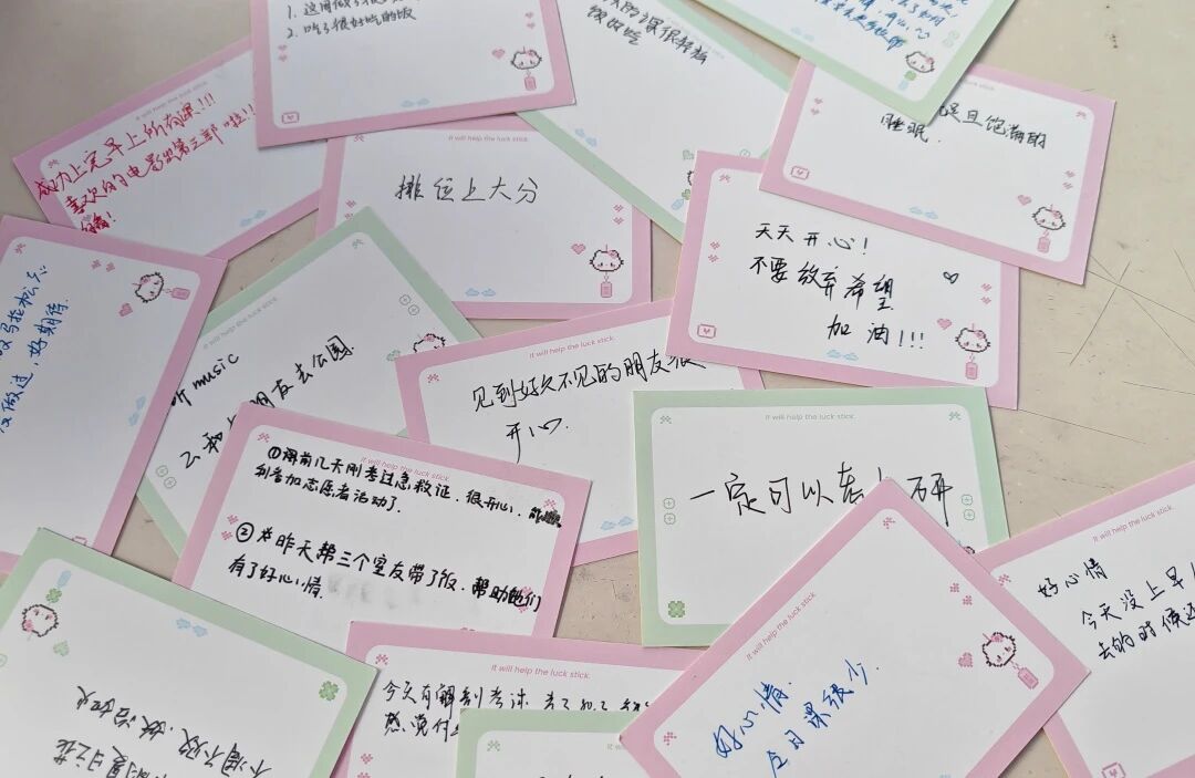 在活动现场,每位参与者首先要做一个温暖的选择:是拥抱今日的“好情绪”,还是坦诚面对暂时的“坏情绪”。若选择“好情绪”,则可以拿起专属卡片,静静写下两件小事——一件是此刻萦绕在心头的愉悦,比如教学楼旁飘来的花香,或是刚解开一个困惑的成就感。另一件是想为他人传递快乐的行动,比如给同学带一杯好喝的水,或是在TA遇见困难时说几句暖心的话鼓励他。写完后将卡片轻轻投入“晴朗箱”,为这份美好存档。若当下正被“坏情绪”困扰,也无需隐藏:可以用纸笔,把心里的烦恼,或许是一次对于学习的焦虑,或是和朋友的小误会,一笔一划写下来,像卸下肩头的小包袱;之后,再从“晴朗箱”里随机抽取一张他人留下的好情绪卡片,感受陌生却真诚的暖意。