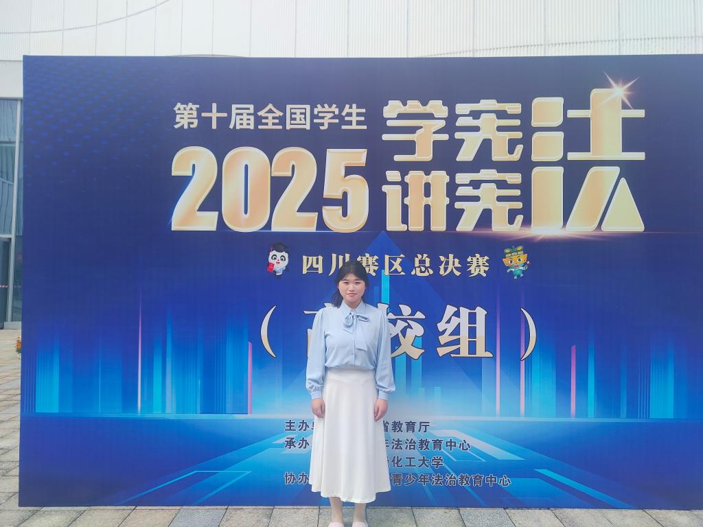 本次活动由四川省教育厅主办,旨在传播宪法知识,弘扬宪法精神,石文月同学以《以青春之名 赴宪法之约》为题,自己的经历为例讲述了青年应以宪法为灯,在教育、国际舞台与国家需要中践行法治精神,用青春奋斗助力民族复兴,彰显了我校学子坚守法治信仰,在奋进新征程中贡献青春力量的决心。