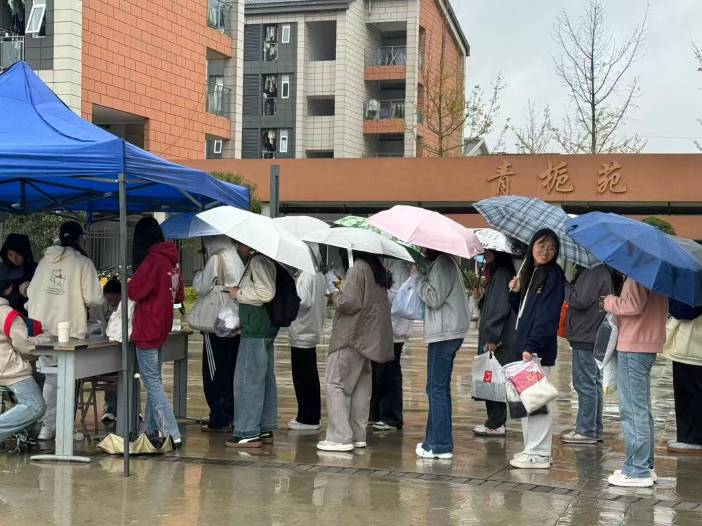 活动期间,捐赠点的摊位前始终人头攒动。同学们或抱着整理整齐的课外书、教辅资料,或提着叠放规整的干净衣物前来捐赠:有的同学带来四级复习资料,在扉页写下“愿这份知识能帮你更靠近梦想”;有的同学则将闲置的秋冬外套仔细清洗烘干,确保接收者能直接使用;还有的同学捐出珍藏的文学名著和适合青少年阅读的绘本,为活动增添暖心力量。