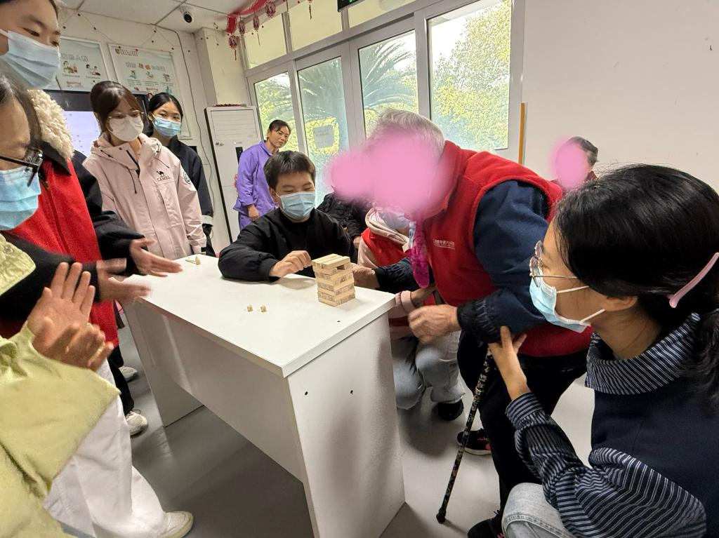 活动筹备阶段,团队志愿者便秉持“精准对接需求,细节传递温度”的理念推进各项工作。活动当日,志愿者在地铁口集合后统一前往医院。抵达医院后,协助行动不便的老人下到前厅,随后围坐与老人们谈天说地,倾听他们的人生经历与感悟,还同老人们一起玩游戏,让他们找回年轻的活力。午后阳光正好,志愿者们两两一组搀扶老人院内踏青,遇到台阶时小心提醒、全程轻扶手臂,庭院内老人的笑声、志愿者的关爱声交织,满是温馨。