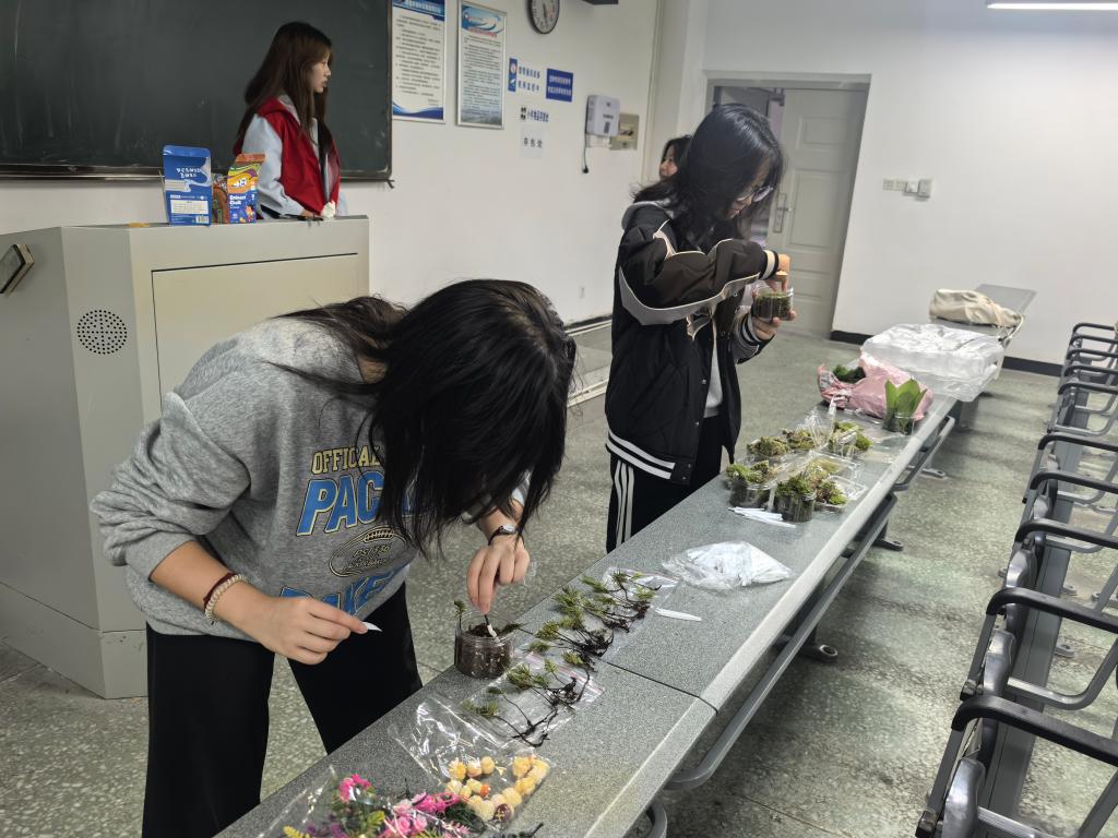 “制作过程特别治愈,看着小植物在手里成型,感觉压力都缓解了。”参与活动的同学表示,微景观不仅点亮了学习空间,更让大家在动手实践中亲近自然。