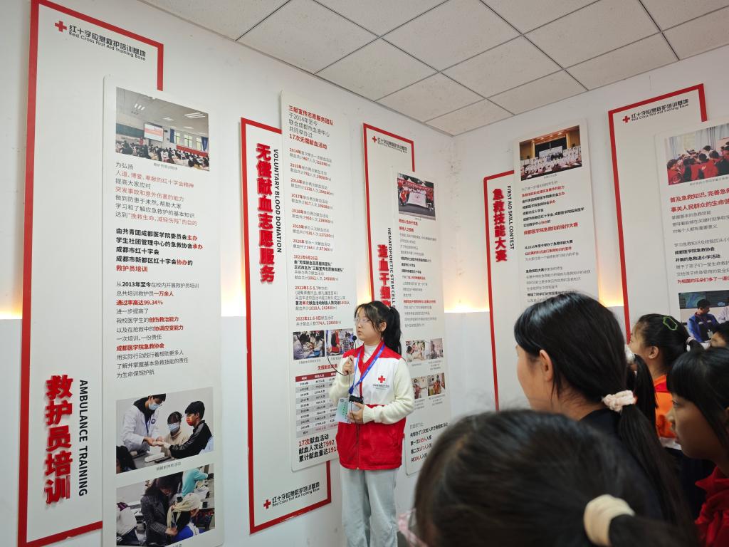 近日,在成都医学院急救协会与青年志愿者协会共同组织下开展了小学系列红十字主题研学活动。本次活动旨在通过通俗易懂的方式,让同学们了解红十字会的起源,并学习基础的急救包扎技能,从而增强自我保护意识和互助精神。