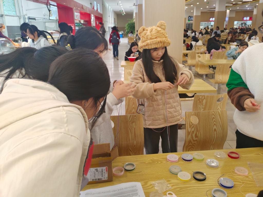 本次活动精心设计了两个创意手作环节:一是“立冬主题剪纸”环节,一方红纸,一把巧剪,成为了参与者抒发冬日情怀的画卷,雪花、饺子、腊梅、暖炉等充满立冬气息的元素,在大家的指尖下生动浮现;二是“暖手绳编织”环节,参与者们选用色彩温暖的棉线、毛线,通过平结、轮回结等各式编法,制作出一条条独一无二的暖手绳。