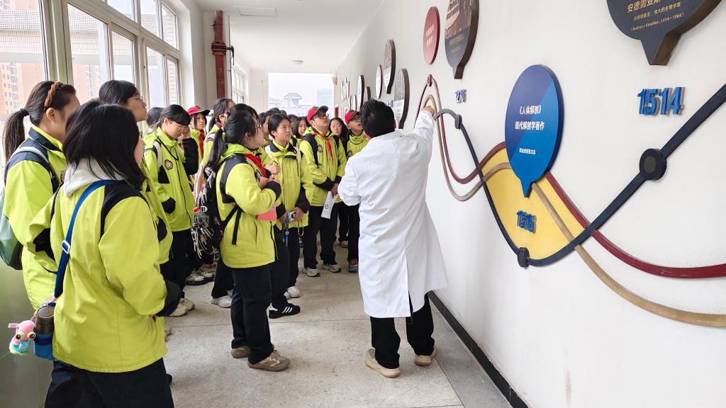 活动伊始,在志愿者的引导下,同学们首先参观了解剖实验楼与生命墙。直观的视觉体验与详尽的讲解,使同学们深刻理解了人体的结构与生命的奥秘,在心中播下了敬畏生命的种子。