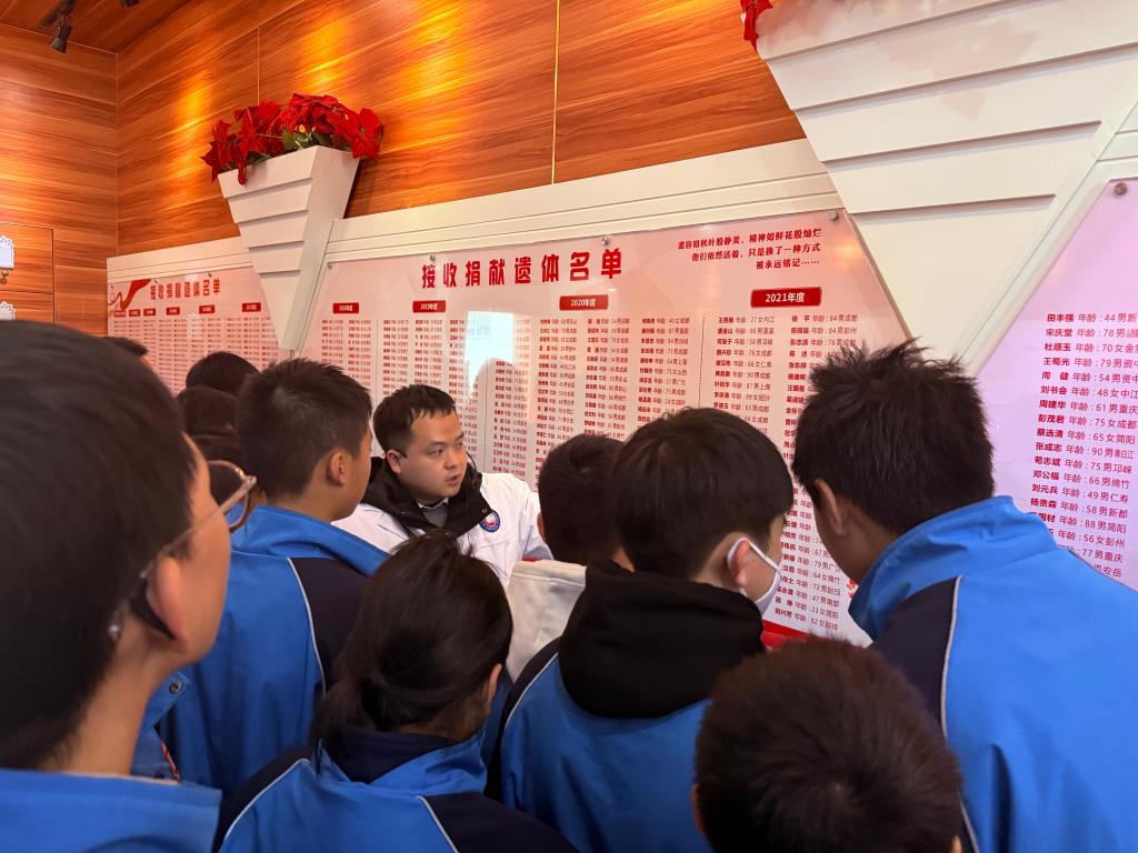 活动首站是庄严肃穆的人体生命馆。在志愿者的引导下,同学们轻声走进馆内,聆听“无言良师”——遗体捐献者的感人事迹。让同学们在安静的参观中对大体老师肃然起敬,读懂“生命以另一种方式延续”的意义。