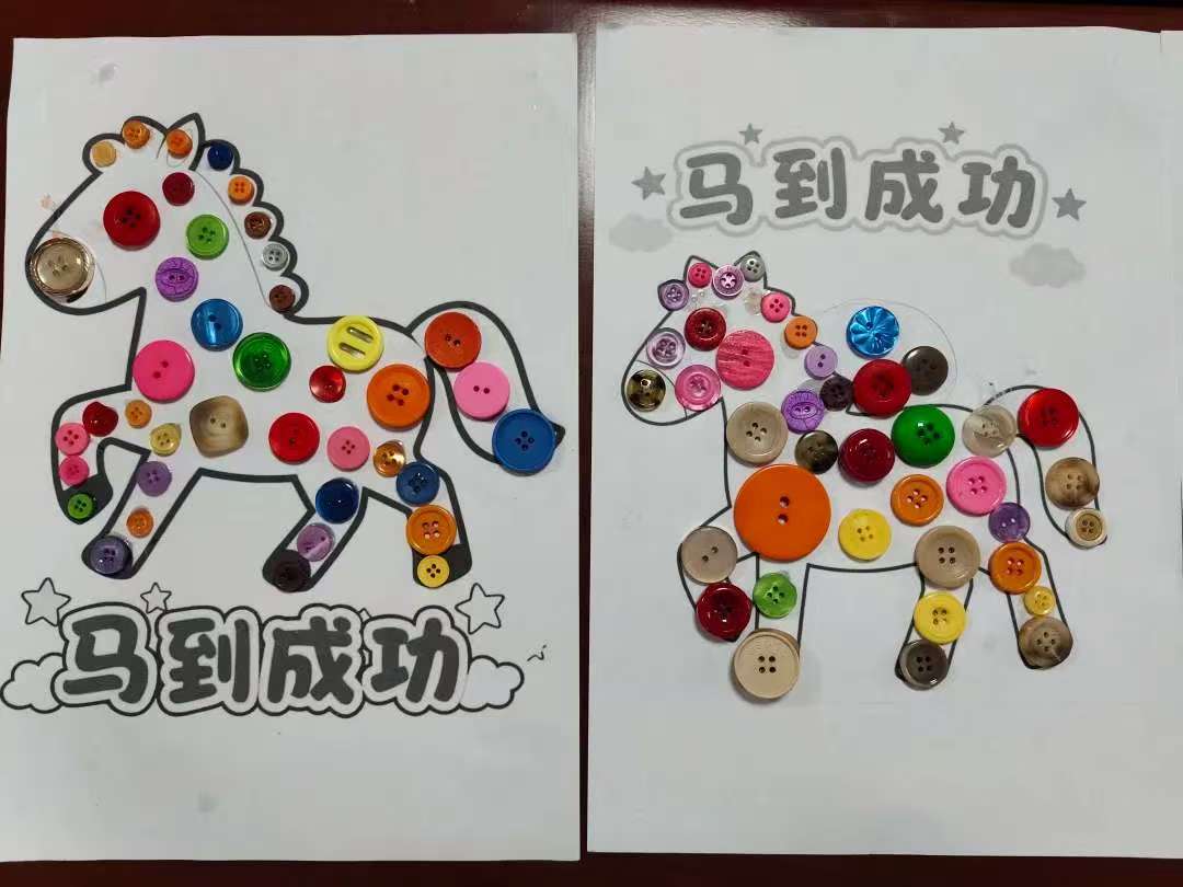 随后,活动进入轻松愉快的互动环节。在“不要碰颜色”反应力挑战中,参与者们与志愿者默契配合,现场欢声笑语不断,不仅锻炼了专注力与反应能力,还大大提高了参与者们的幸福指数。在福气小马纽扣画手工创作环节中,参与者们精心挑选不同色彩的纽扣,认真粘贴,在动手实践中感受创作的乐趣,完成的作品承载着童趣与祝福。
