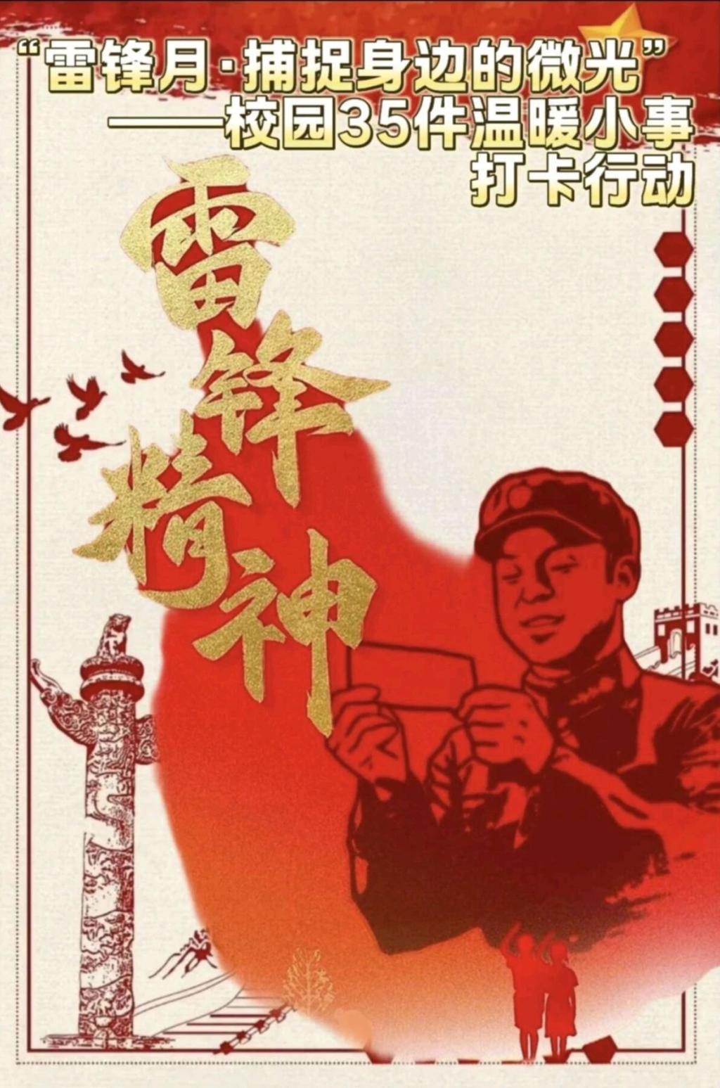 “雷锋月·捕捉身边的微光”不仅是一次简单的打卡活动,更是一场关于日常善意的观察与实践。活动鼓励同学们从“温暖小事清单”中自主选择任务完成,用镜头记录助人瞬间,用文字分享行动感悟。在践行与反思中,帮助同学搬书的互助之举、整理共享单车的文明行为、践行光盘行动的节约习惯等具体行动彼此影响、相互传递,不仅深化了大家对雷锋精神内涵的理解,更在校园里形成了“人人可为、处处可为”的志愿服务共识,增强了同学们的社会责任感。