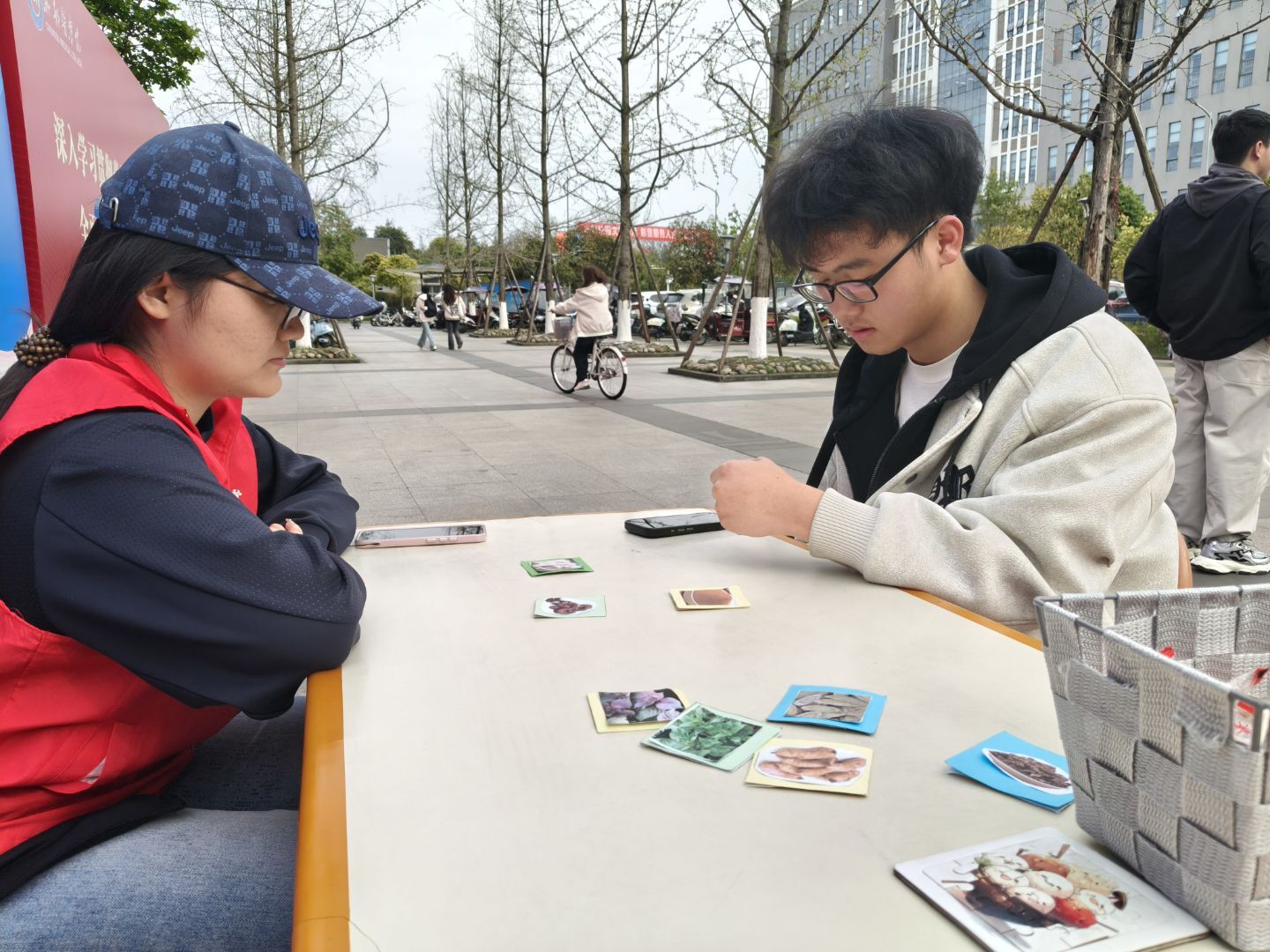 活动以芳香类中草药为核心,通过实物展示、图文讲解与互动体验相结合的方式开展。志愿者现场讲解中草药的名称、功效与日常应用,并引导同学们化身“临时宣讲员”接力分享知识。现场设置了功效速记、随机复现等互动环节,同学们在辨识本草、交流心得中深化认知,并尝试将所学知识进行分享。本次活动既让中医药文化的深厚底蕴被慢慢读懂,又使志愿分享的乐趣悄然流淌。