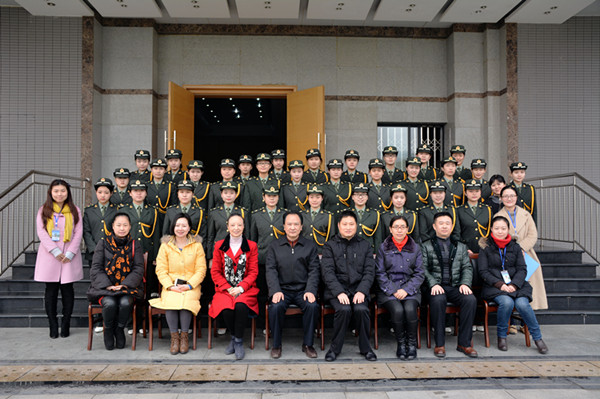会议结束后,到会领导与军乐团全体队员在学术交流中心门口集体合影留念。