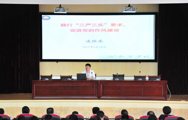 开班典礼结束后,凌保东讲授了本期培训的第一堂党课,题为《践行“三严三实”要求,促进党的作风建设》。课上,凌保东讲授了《党章》的基本内容,明确党的组织制度,严格遵守党的纪律,树立良好作风,践行“三严三实”要求、促进党的作风建设五个方面的内容。凌保东在授课中重点讲到作为大学生党员应具备的素质,入党积极分子应该怎样做,如何将“三严三实”要求融入大学生党员的学习、生活和工作当中,加强党性修养,向身边的优秀党员学习,坚持不懈地努力,争取早日加入中国共产党。