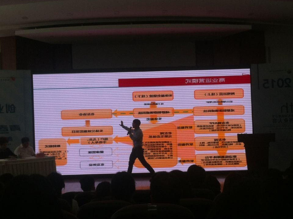 大会分三个阶段进行:第一阶段为三位青年创业代表:李文浩、杨震、申波讲述创业经历和自己产品和公司,以鼓励在各校同学励志和奋斗。第二阶段为红旗连锁总裁曹世如女士为仪式和创业大赛建立网站。第三阶段为三位创业中的公司带头人兼CEO展示并讲述个人公司经营及运行模式,之后现场导师当场提问,