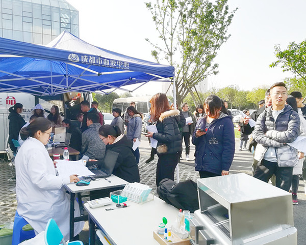 12月3、4日,成都市血液中心的献血车开进我校新都校区,连续两天开展无偿献血爱心活动,广大师生积极踊跃加入了无偿献血队伍中,掀起成医无偿献血的爱心热潮。