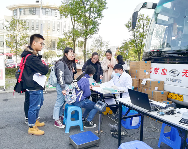 冬日里的寒风也阻挡不了大家的热情。上午不到十点,陆陆续续就有同学在献血车前排起了队等待查验、献血;校团委派出的献血队志愿者们在现场热情地为排队的同学们做信息登记、接受咨询;血液中心的工作人员不停歇地忙碌着进行血型检验、采血。