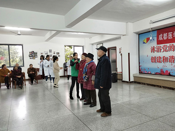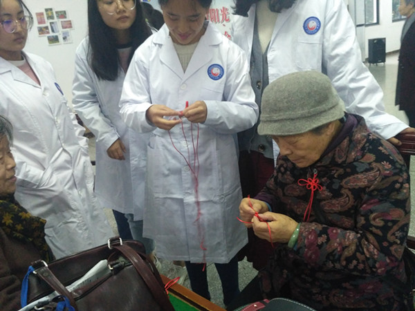 活动期间,同学们为养老院的老人们表演了自编自导的节目,包括手语操、歌曲演唱,性格外向的老人在青年学生的感染下也演唱了《打靶归来》、《敢问路在何方》等经典老歌。表演结束,同学们向老人们宣讲了养生保健知识,还教老人编中国结,手巧的奶奶们学起来又快又好,他们把编好的中国结挂在衣襟上,在我们的镜头前露出开心的笑容。