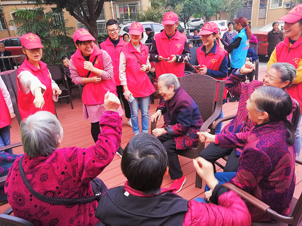 在三河敬老院,人文分会和公卫分会的志愿者们耐心倾听老人们回忆美好往事,给老人讲笑话、帮老人按摩,用心传播养生知识;护理分会的伙伴们帮助遐龄居敬老院的老人们整理着装,擦拭座椅,热情地为老人服务。还有检验分会的同学们与五龙社区的老人们一起玩击鼓传花和你比我猜的小游戏,活跃老人们的身心;药学分会和文礼部的青年们给新繁养老服务中心的老人们带来了双簧、新疆舞、葫芦丝演奏等精彩的节目。生物分会和心理分会的志愿者们还为老人们讲诉老年“四忌”,更是唱起了《红军战歌》等红歌,让新都红星敬老院庭院里充满了欢声笑语,人人脸上都洋溢着灿烂的笑容。