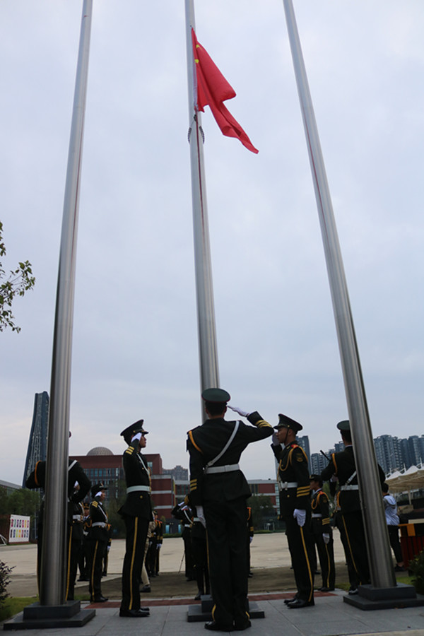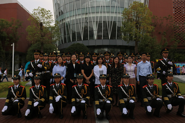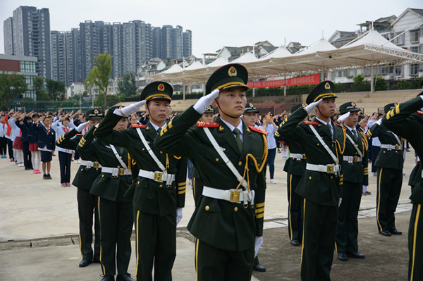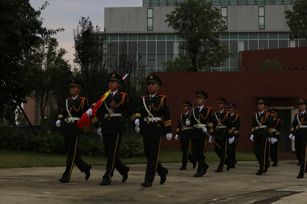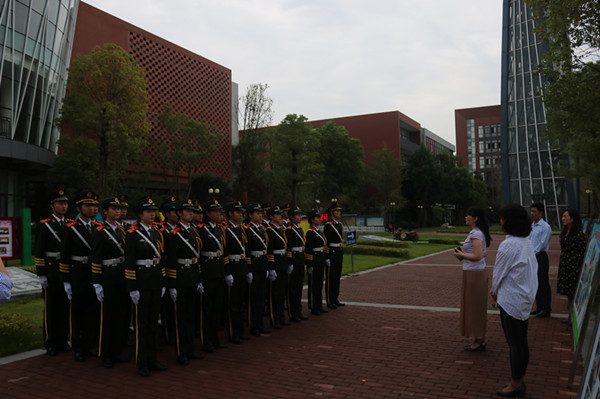 9月10日周一清晨,我校国旗护卫队受邀前往新都区桂林小学执行升旗任务, 我校实验设备处副处长魏义东、校团委副书记彭成静带队。