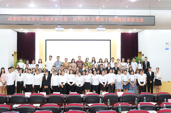 6月7日晚,成都医学院青年志愿者协会第三届代表大会暨第十四届换届表彰大会在学术交流中心顺利召开。校团委副书记彭成静、小丑医生志愿服务团队指导老师刘月明教授、健康养老志愿服务团队指导老师张虹、校团委全体老师,以及各大学生组织代表、125名青代会代表出席会议。