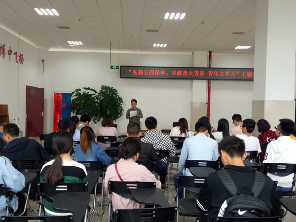 在团中央的号召下,校团委的部署下,我校共青团基层组织、校级学生组织积极开展“青年大学习”五四主题团日活动。5月9日中午,社团联合会在大学生活动中心举办“弘扬五四精神,奉献火热青春”青年大学习主题交流会。社联秘书长卜舒老师、主席团成员、各部门骨干、各社团代表参加交流会。