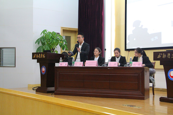 12月14日晚上,成都医学院第十届“成医英才·每月一辩”大学生辩论赛总决赛在学术报告厅举行,比赛由人文信息管理学院队和公共卫生学院队两队辩手围绕“手机的普遍使用对于大学生的成才利大于弊还是弊大于利”进行论战,成都医学院原副院长昝加禄教授、国资管理处处长龙兴跃、马克思主义学院院长张俊、纪检监察处副处长李存茂、教务处副处长邓峰美、校团委副书记彭成静和马克思主义学院李保国老师组成评委团。公共卫生学院余小平、人文管理学院副院长刘永贵带领各自学院共200余名师生到场为辩手加油。