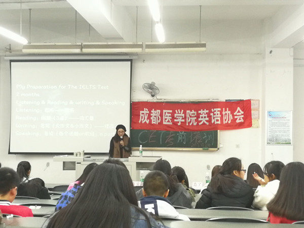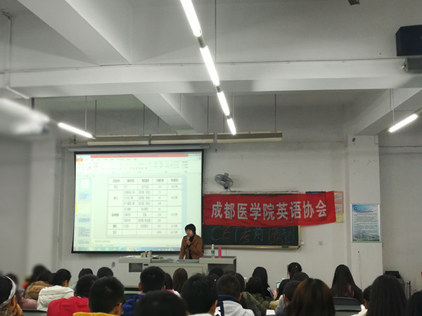 11月24日晚,社团联合会英语协会天回分会在天回校区101教室开展了“备战四六级英语专题讲座”,邀请了外语教研室张芬副教授及护理学院的优秀学姐们,指导学生如何进行四六级考前准备,让同学们充分的了解考试形式、内容、技巧等信息,为即将到来的四六级考试做最后的冲刺。